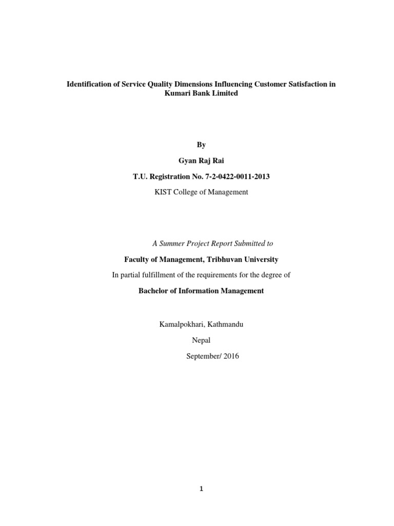 Influencing Customer Satisfaction in Kumari Bank Limited” is an academic work done by Gyan