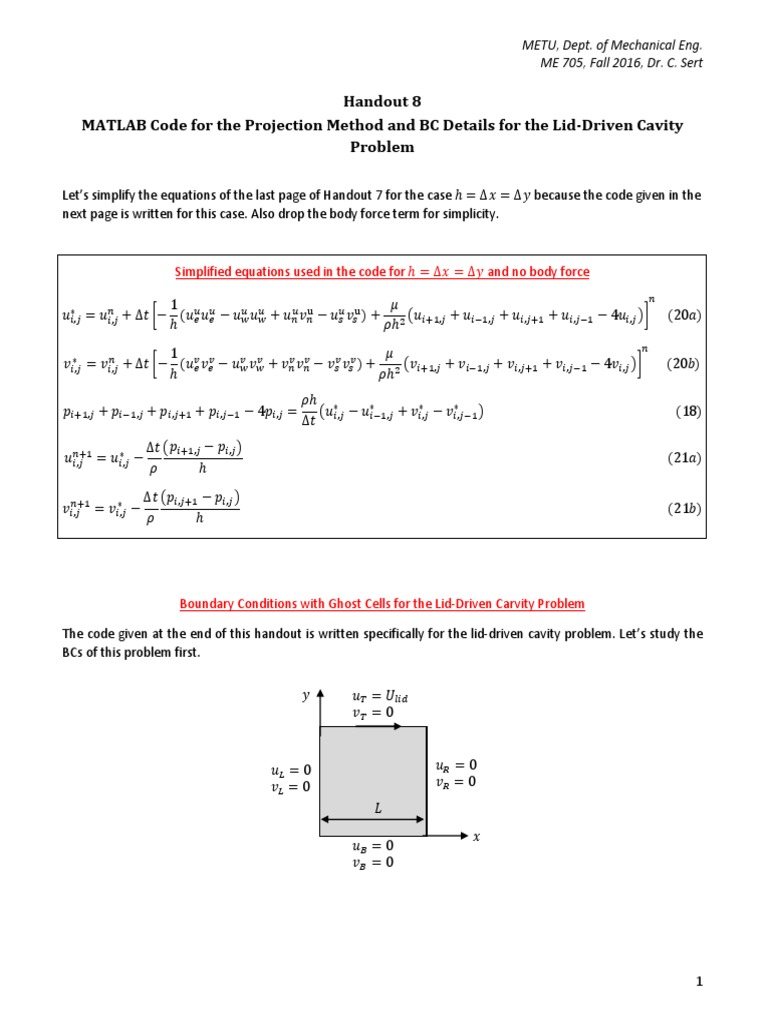 The code given at the end of this handout is written specifically for the lid-driven cavity problem. Let’s study the