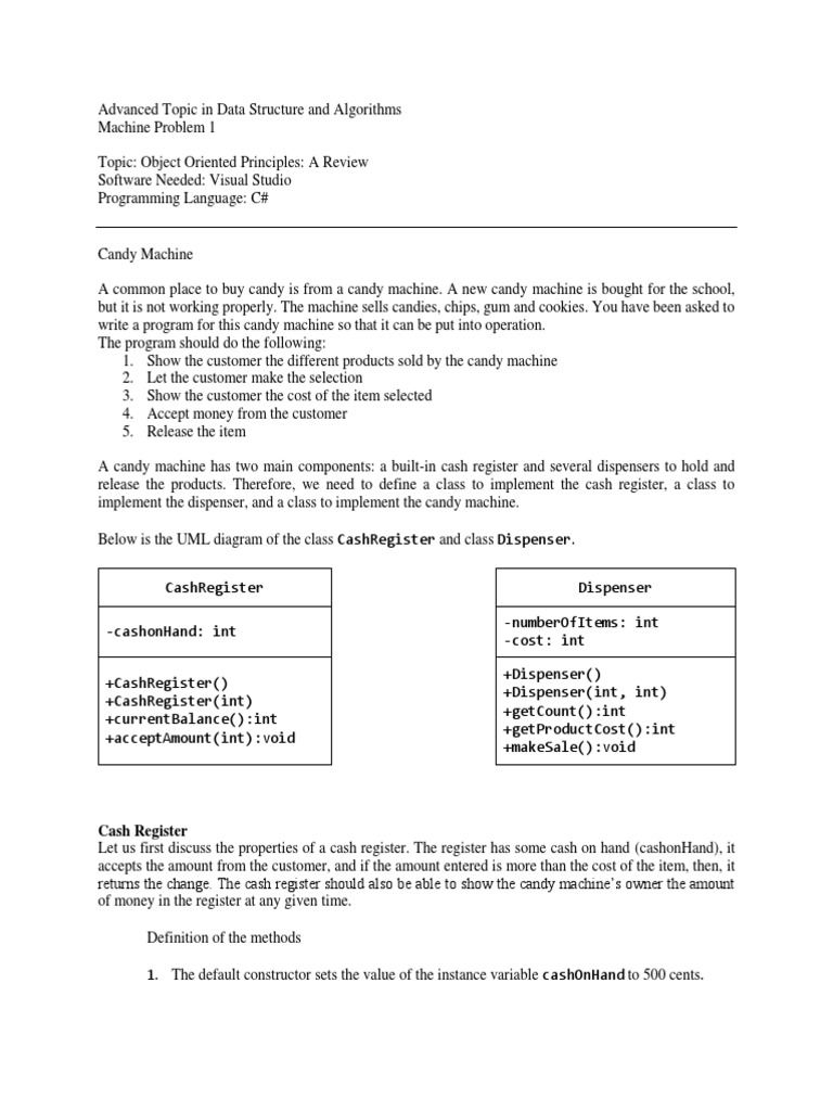 Below is the UML diagram of the class CashRegister and class Dispenser.
