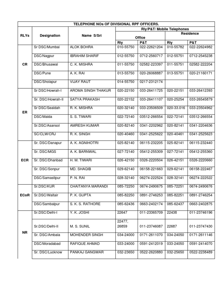 TELEPHONE NOs OF DIVISIONAL RPF OFFICERS.