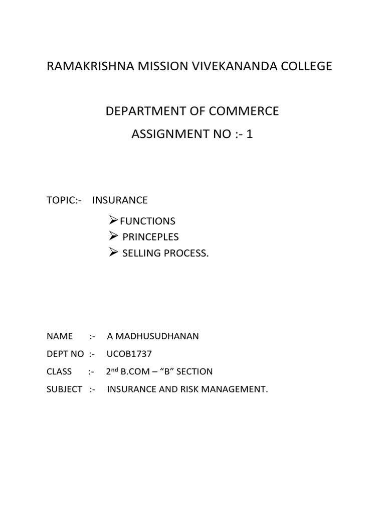SUBJECT :- INSURANCE AND RISK MANAGEMENT.