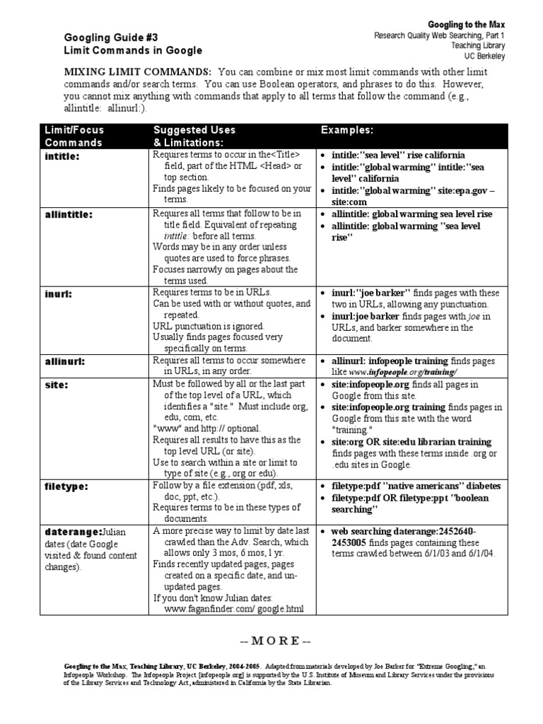 Limit Commands in Google UC Berkeley