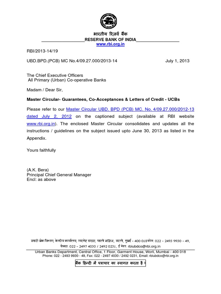 Master Circular- Guarantees, Co-Acceptances & Letters of Credit - UCBs
