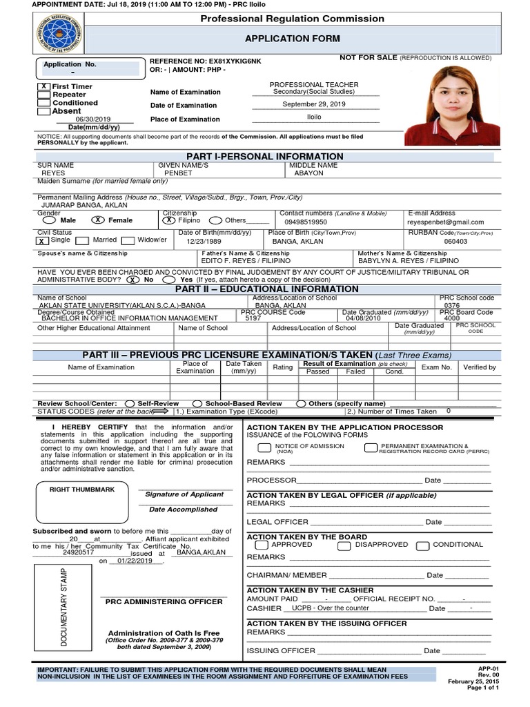APPOINTMENT DATE: Jul 18, 2019 (11:00 AM TO 12:00 PM) - PRC Iloilo