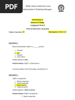 This document contains a 10 question quiz about Internet of Things protocols and standards. It covers topics like MQTT, CoAP, REST, AMQP, IEEE 802.15.4, and RPL, testing knowledge of their purposes, properties, and relationship to IoT networks.