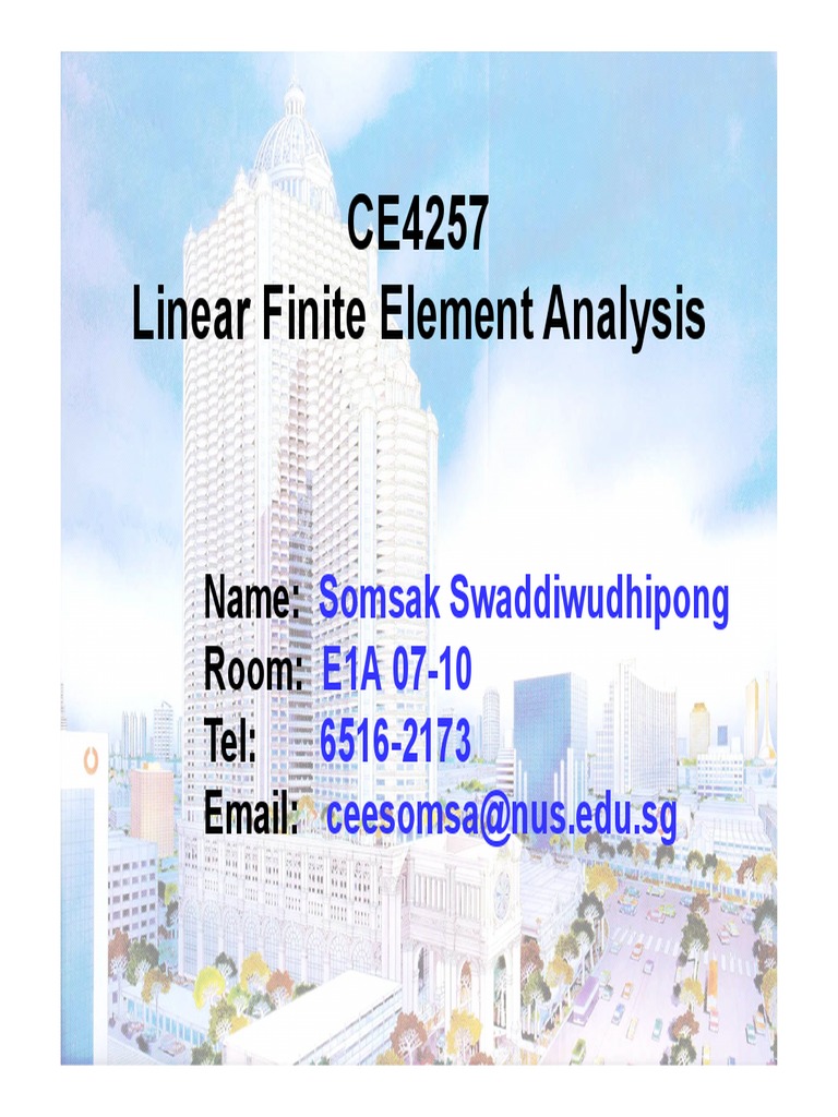 CE4257 Linear Finite Element Analysis: Name: Room: Tel: Email