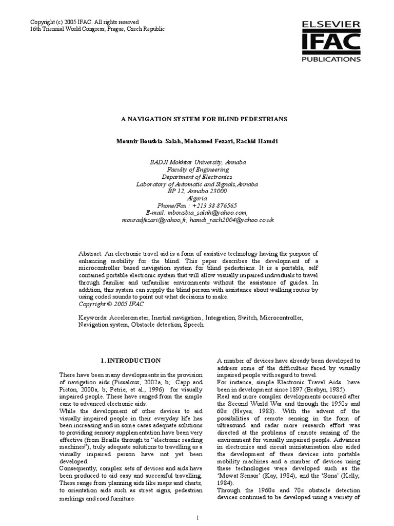 Abstract: An electronic travel aid is a form of assistive technology having the purpose of