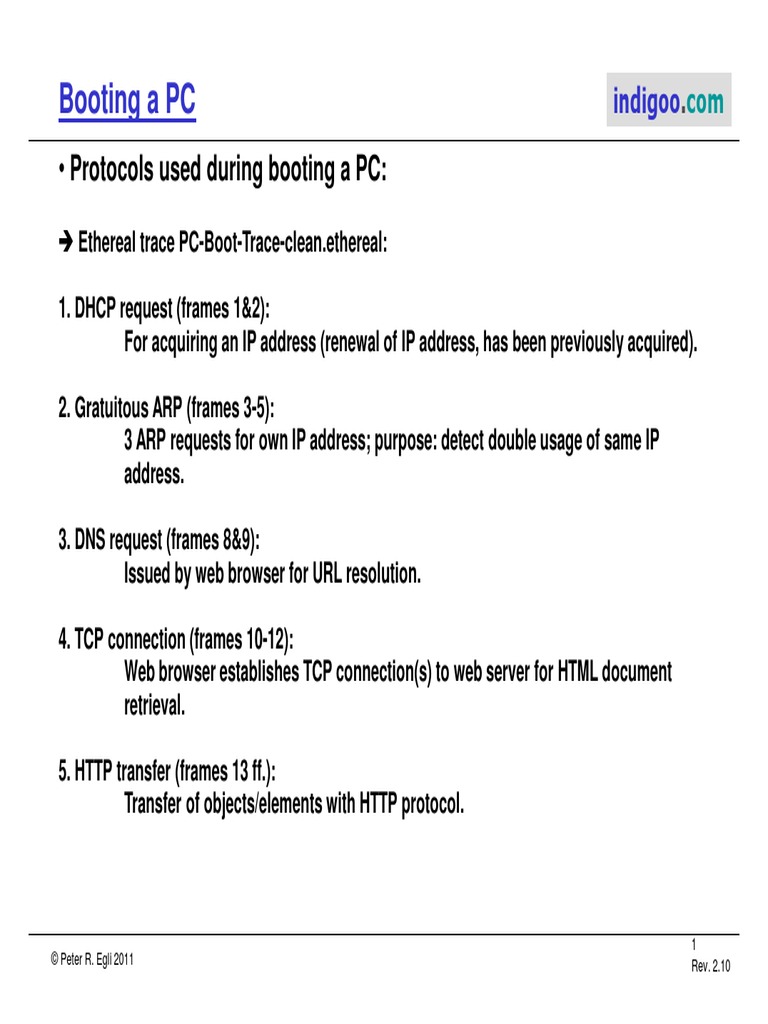 • Protocols used during booting a PC: