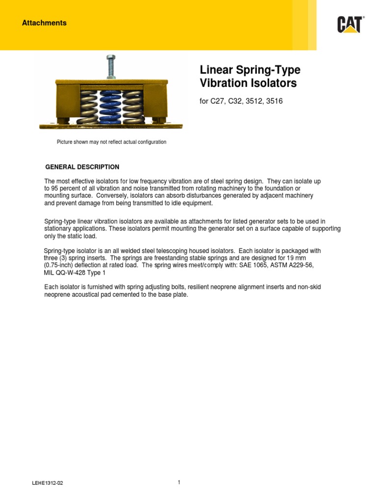 Spring-type linear vibration isolators are available as attachments for listed generator sets to be used in