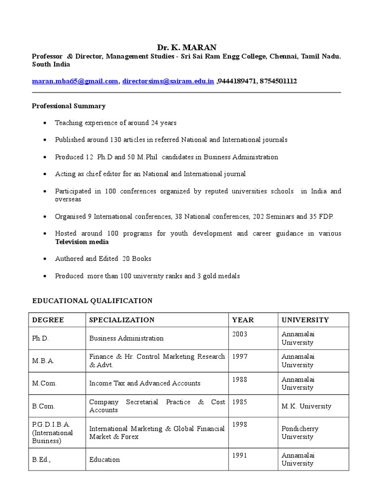 Professor & Director, Management Studies - Sri Sai Ram Engg College, Chennai, Tamil Nadu.