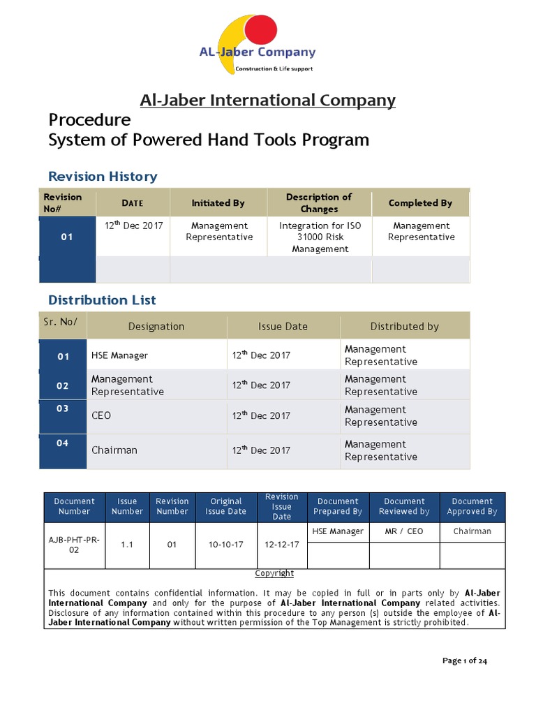 This document is the property of Al-Jaber International Company. Any copying and distribution of this document