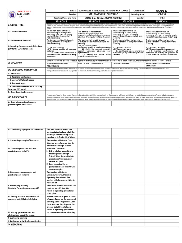 DAILY LESSON Teacher MR. MARVIN E. CLUTARIO Learning Area ICT-CSS