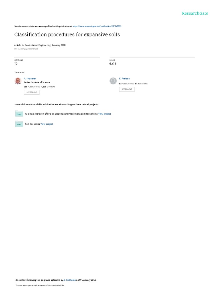 Classification Procedures For Expansive Soils: Geotechnical Engineering January 2000