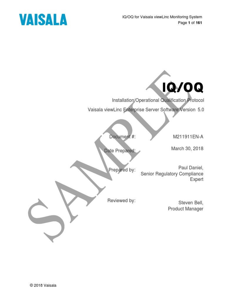 this Installation/Operational Qualification Protocol for the Vaisala viewLinc Monitoring System