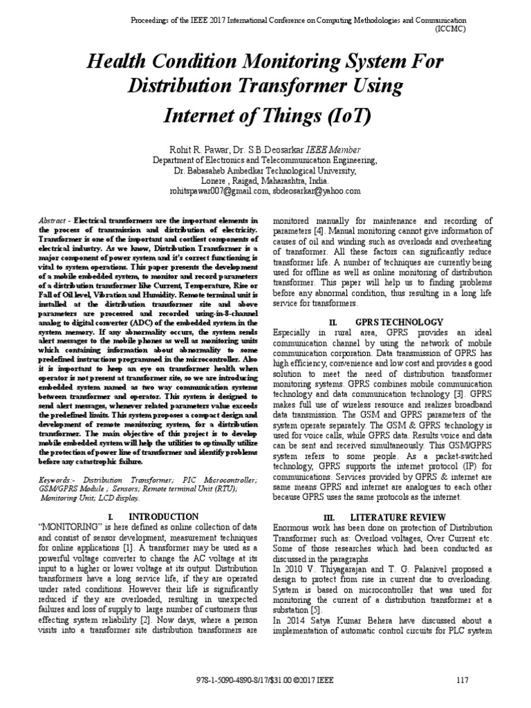 Keywords:- Distribution Transformer; PIC Microcontroller; communications. Services provided by GPRS & internet are