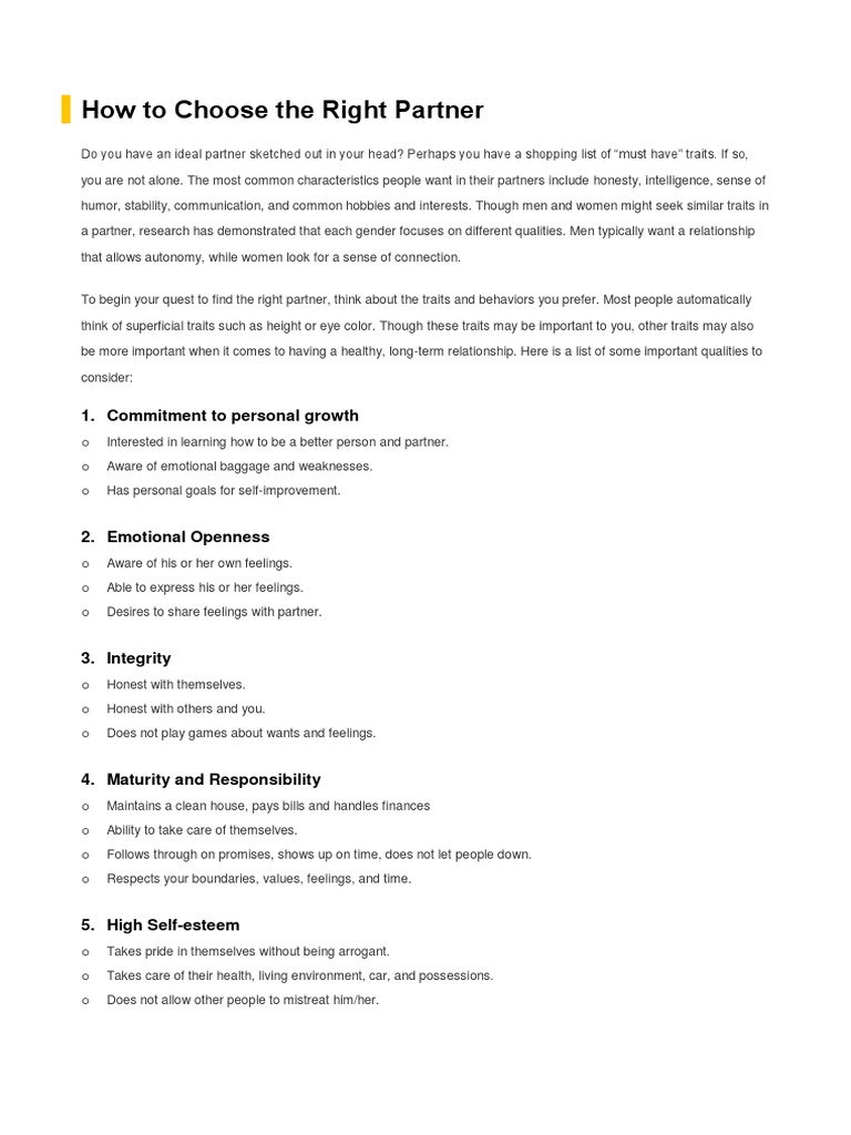 To begin your quest to find the right partner, think about the traits and behaviors you prefer. Most people automatically