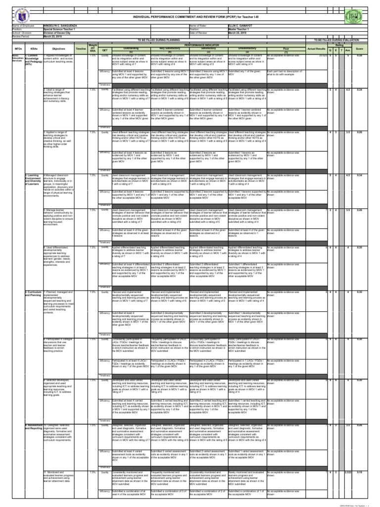 INDIVIDUAL PERFORMANCE COMMITMENT AND REVIEW FORM (IPCRF) for Teacher I-III