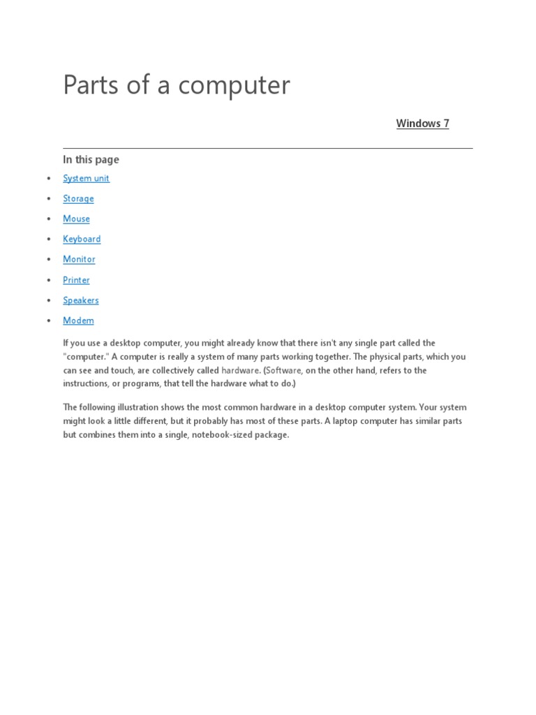 "computer." A computer is really a system of many parts working together. The physical parts, which you