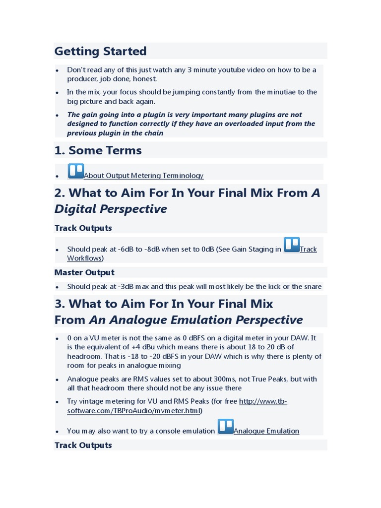 2. Gain Staging: Start in mono to get the gain right across tracks. With faders on