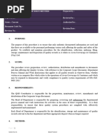 procedure or document is forwarded to the Quality Manager for incorporation into the master copy.