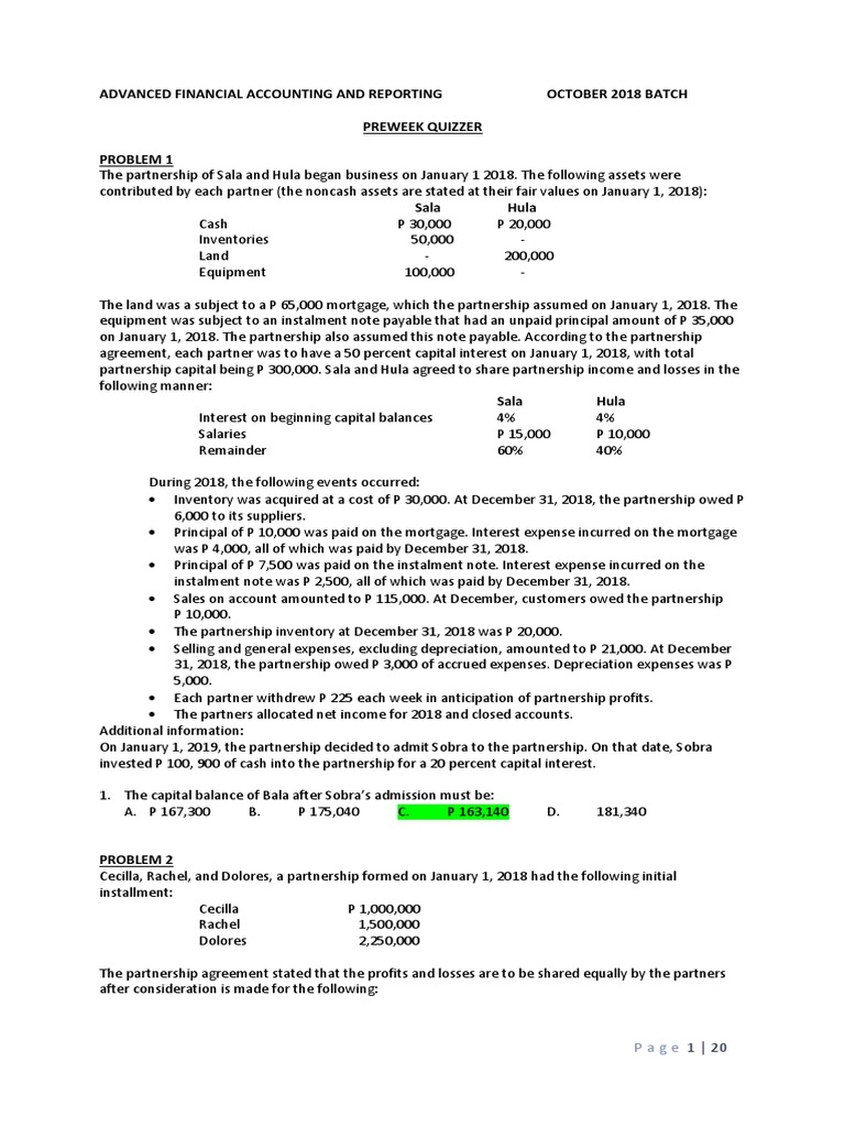 The land was a subject to a P 65,000 mortgage, which the partnership assumed on January 1, 2018. The