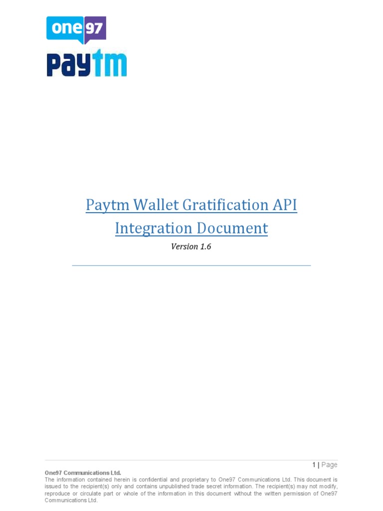 The information contained herein is confidential and proprietary to One97 Communications Ltd. This document is