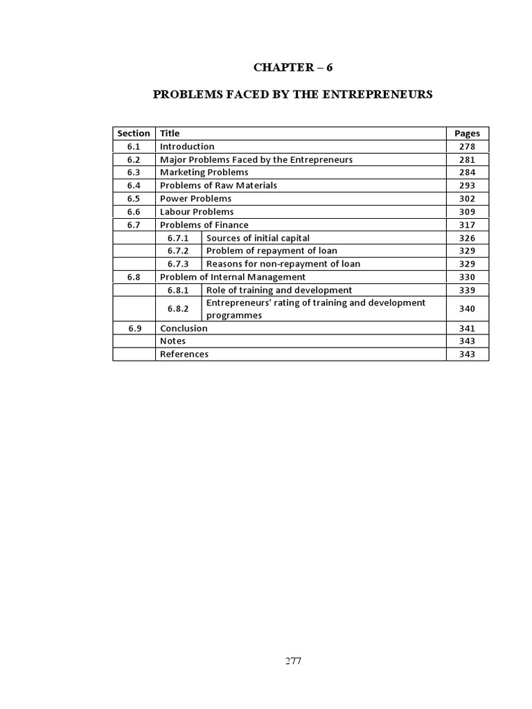 This chapter deals with the various problems faced by the sample entrepreneurs in