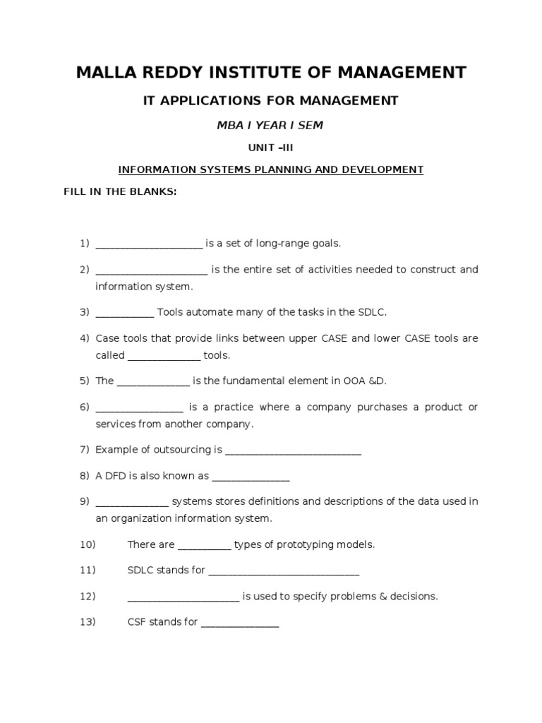 INFORMATION SYSTEMS PLANNING AND DEVELOPMENT