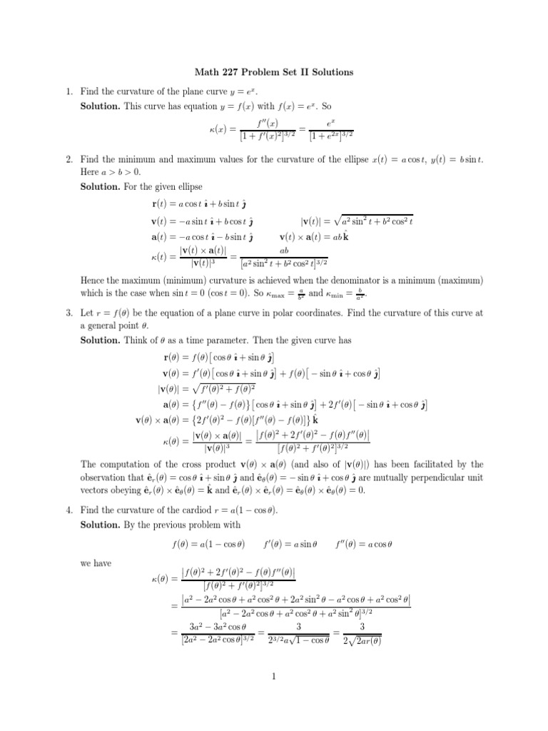 which is the case when sin t = 0 (cos t = 0). So κmax = ba2 and κmin = ab2 .