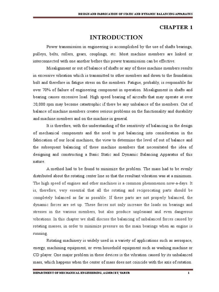 designing and constructing a Basic Static and Dynamic Balancing Apparatus of this