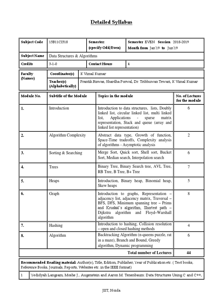 Subject: Data Structures & Algorithms Code: 15B11CI518/15B17CI578