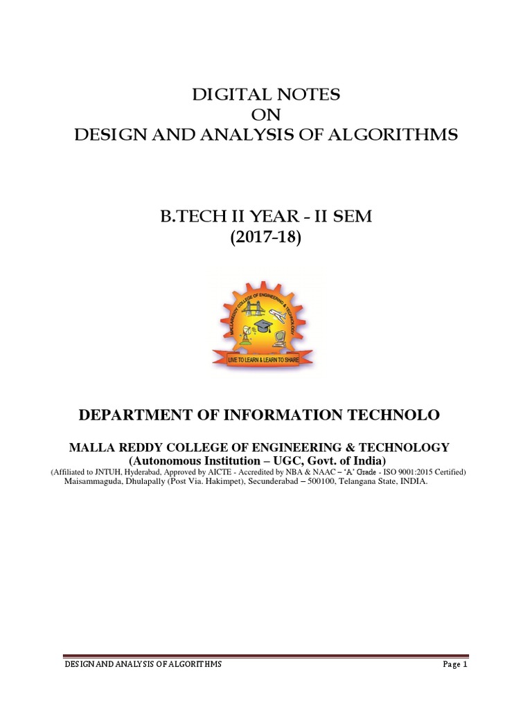 DESIGN AND ANALYSIS OF ALGORITHMS