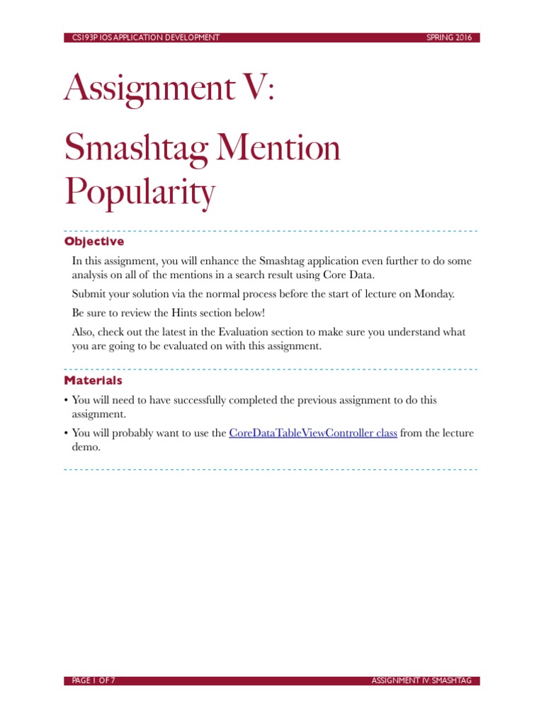 PAGE 7 OF 7 ASSIGNMENT IV: SMASHTAG