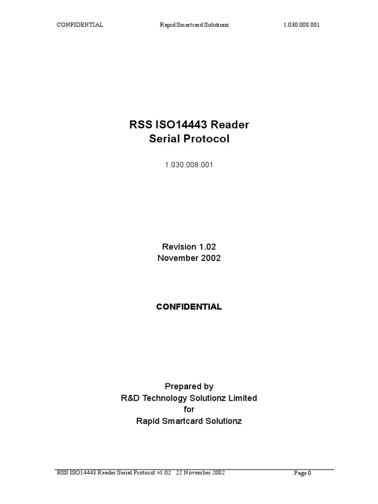 as confidential to Rapid Smartcard Solutionz Limited and may not be divulged to any third party