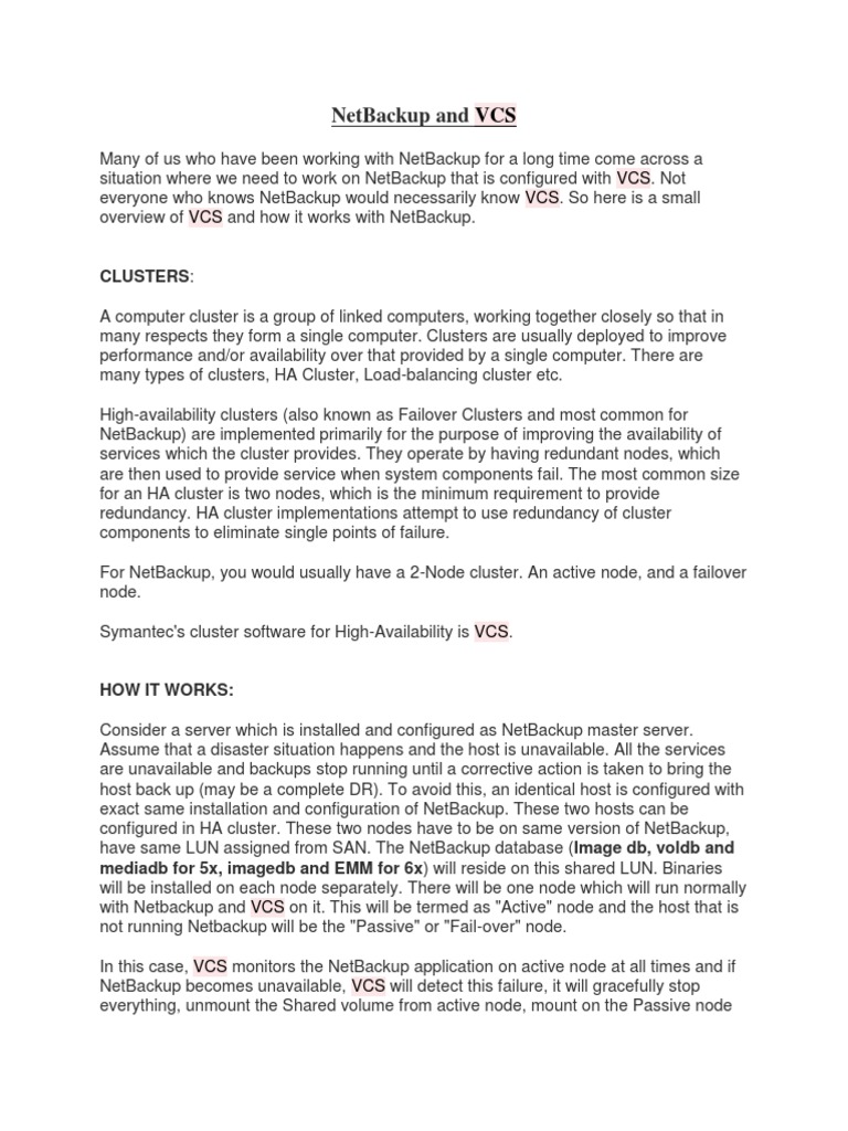 everyone who knows NetBackup would necessarily know VCS. So here is a small