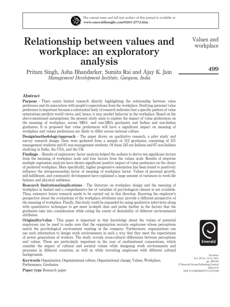Singh, P., Bhandarkar, A., Jain, A.K. and Rai, S. (2008), “The meaning of workplace”,