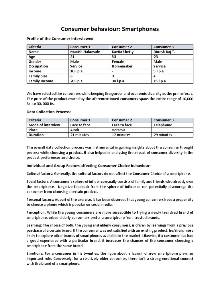 process while choosing a product. It also helped in analysing the impact of consumer diversity in the