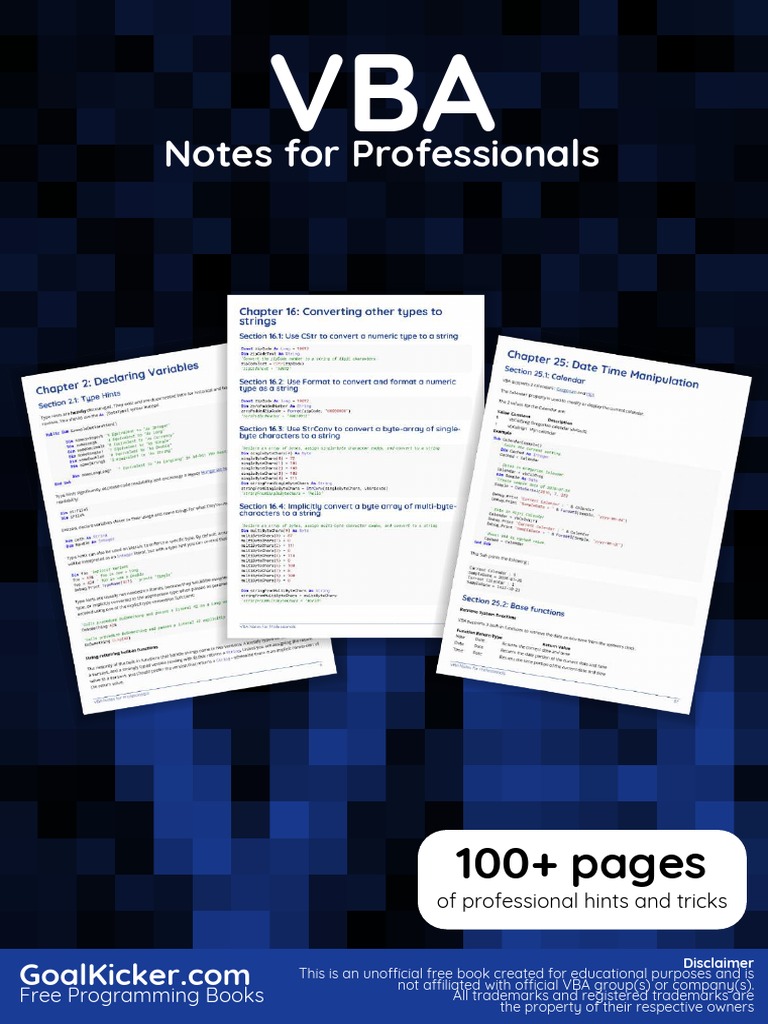 Section 9.4: Declaring an Array in VBA ..................................................................................................................... 45