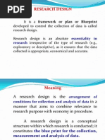 • Research design specifies the methods and procedures on collection, measurement,