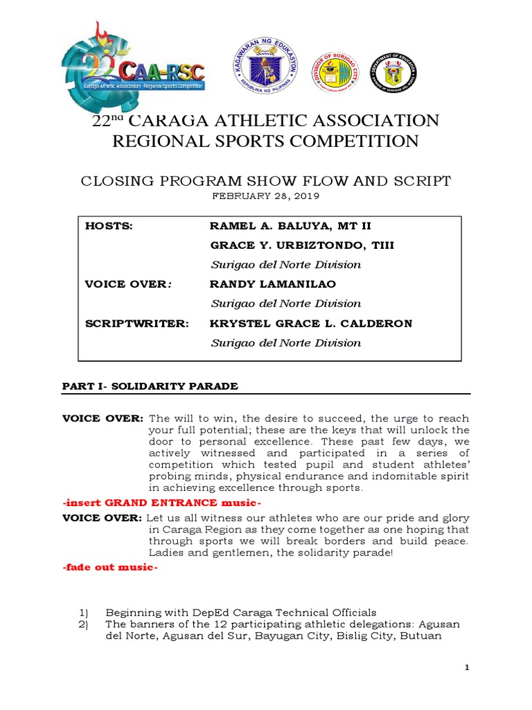 CLOSING PROGRAM SHOW FLOW AND SCRIPT