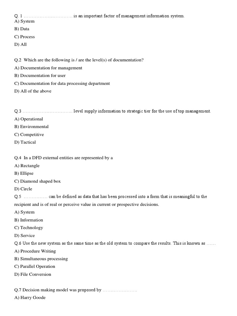 8. ……………. Costs for a computer based information system include the salaries of the system analysts