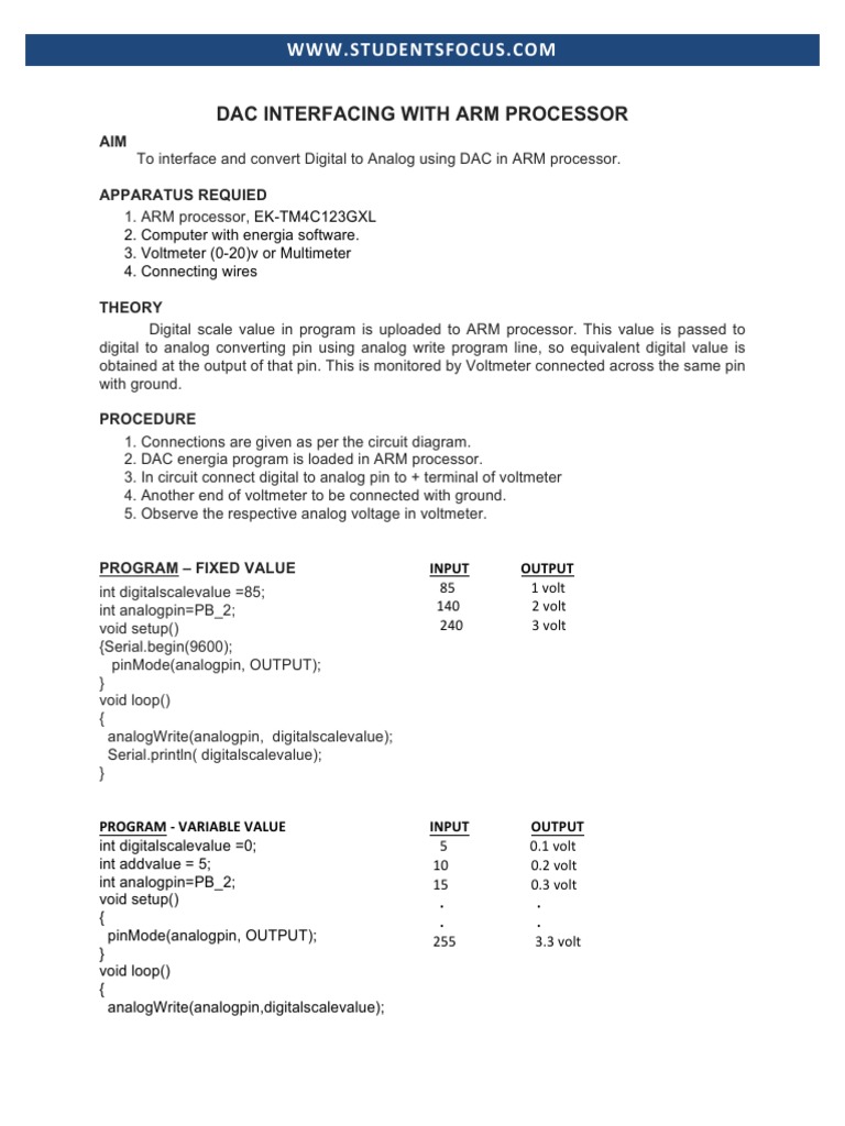 obtained at the output of that pin. This is monitored by Voltmeter connected across the same pin