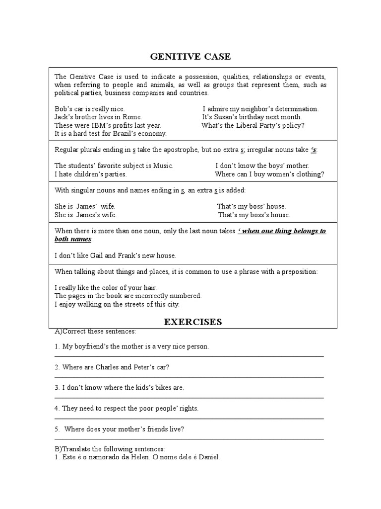The Genitive Case is used to indicate a possession, qualities, relationships or events,