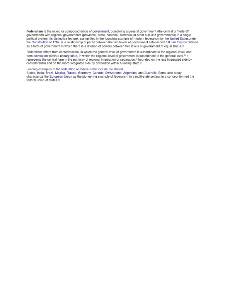 political system. Its distinctive feature, exemplified in the founding example of modern federalism by the United Statesunder