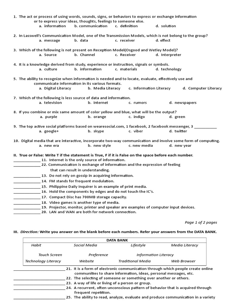 ____________ 15. Philippine Daily Inquirer is an example of print media.