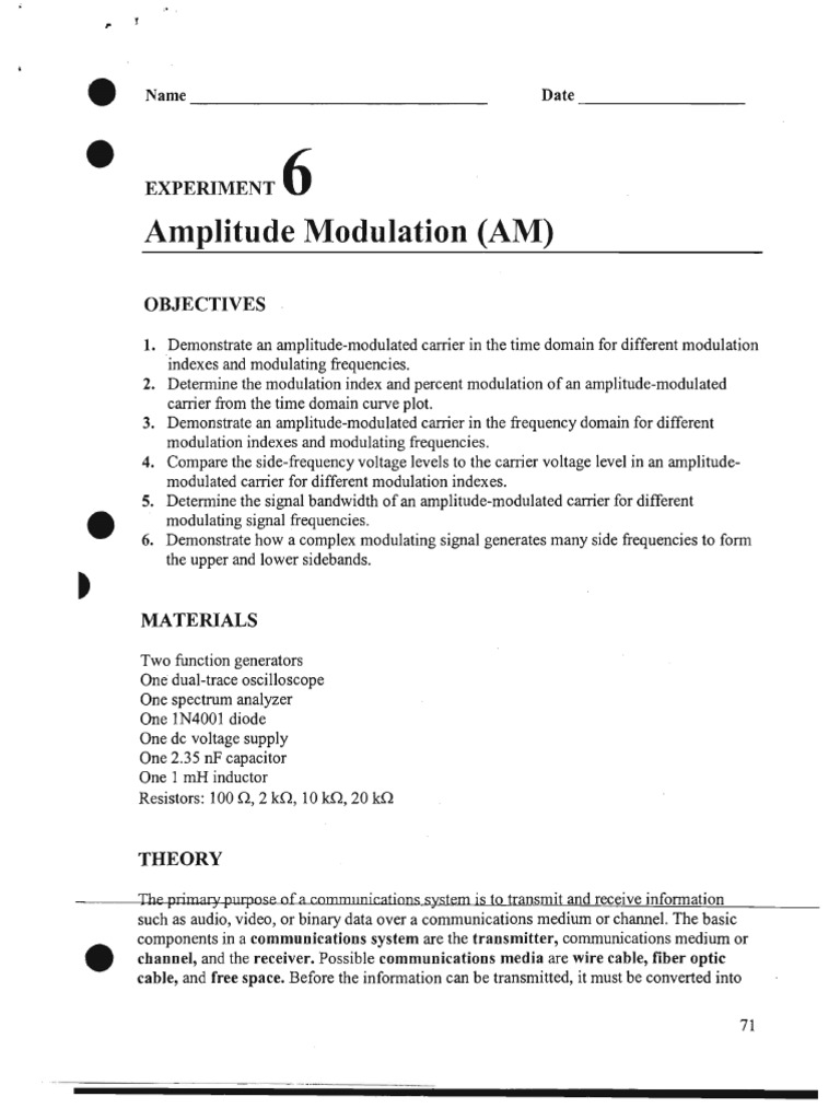 Therefore, both FM and PM are often referred to as angle modulation. In this experiment,