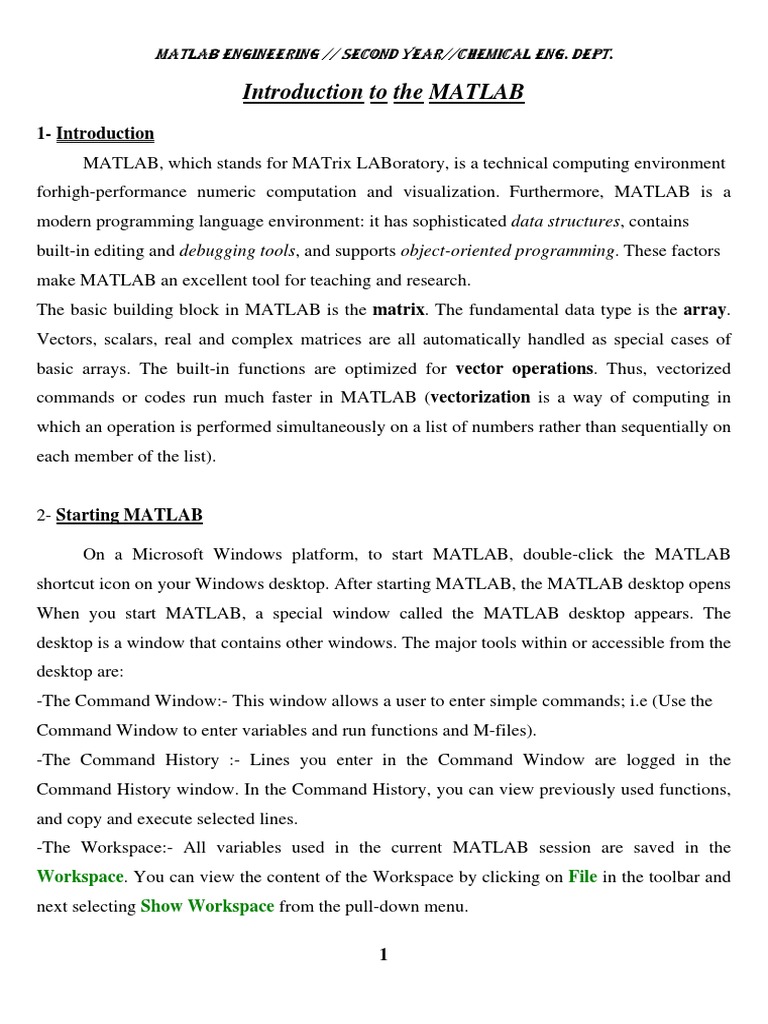 Introduction to the MATLAB