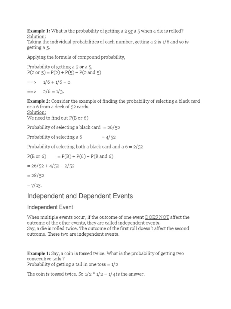 P(2 or 5) = P(2) + P(5) – P(2 and 5)
