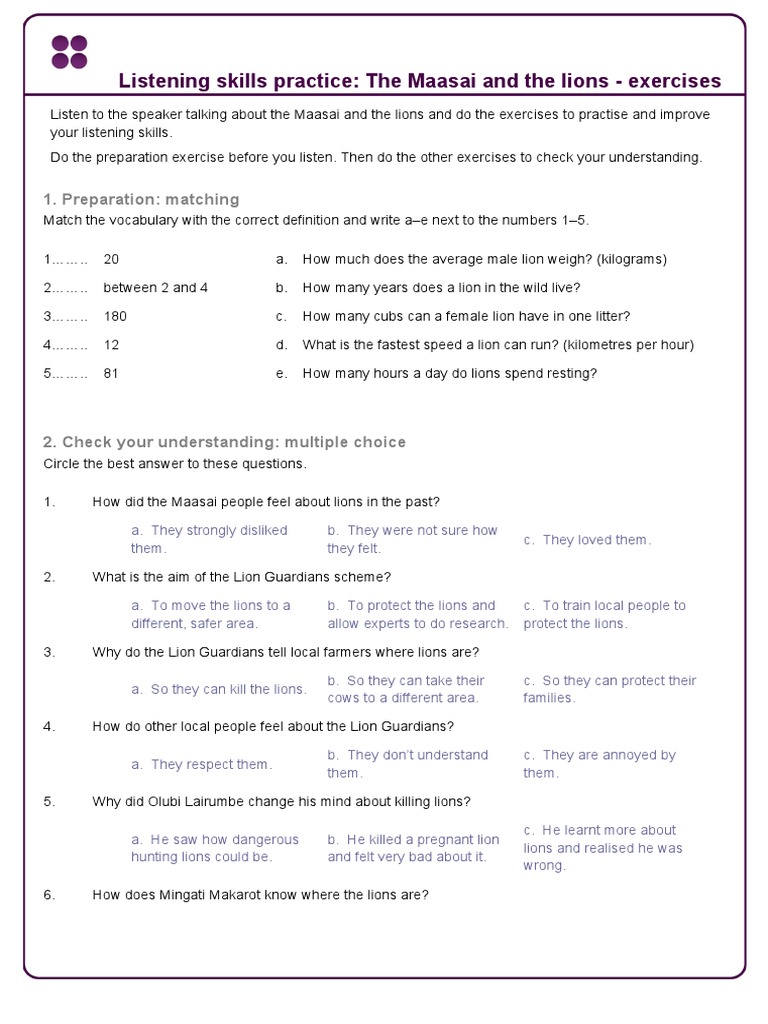 Listening skills practice: The Maasai and the lions - exercises