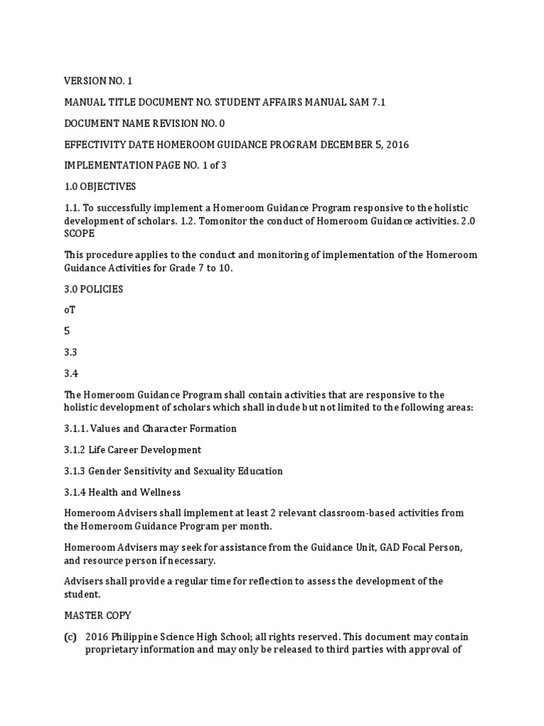 DOCUMENT NAME REVISION NO. 0 EFFECTIVITY DATE HOMEROOM GUIDANCE